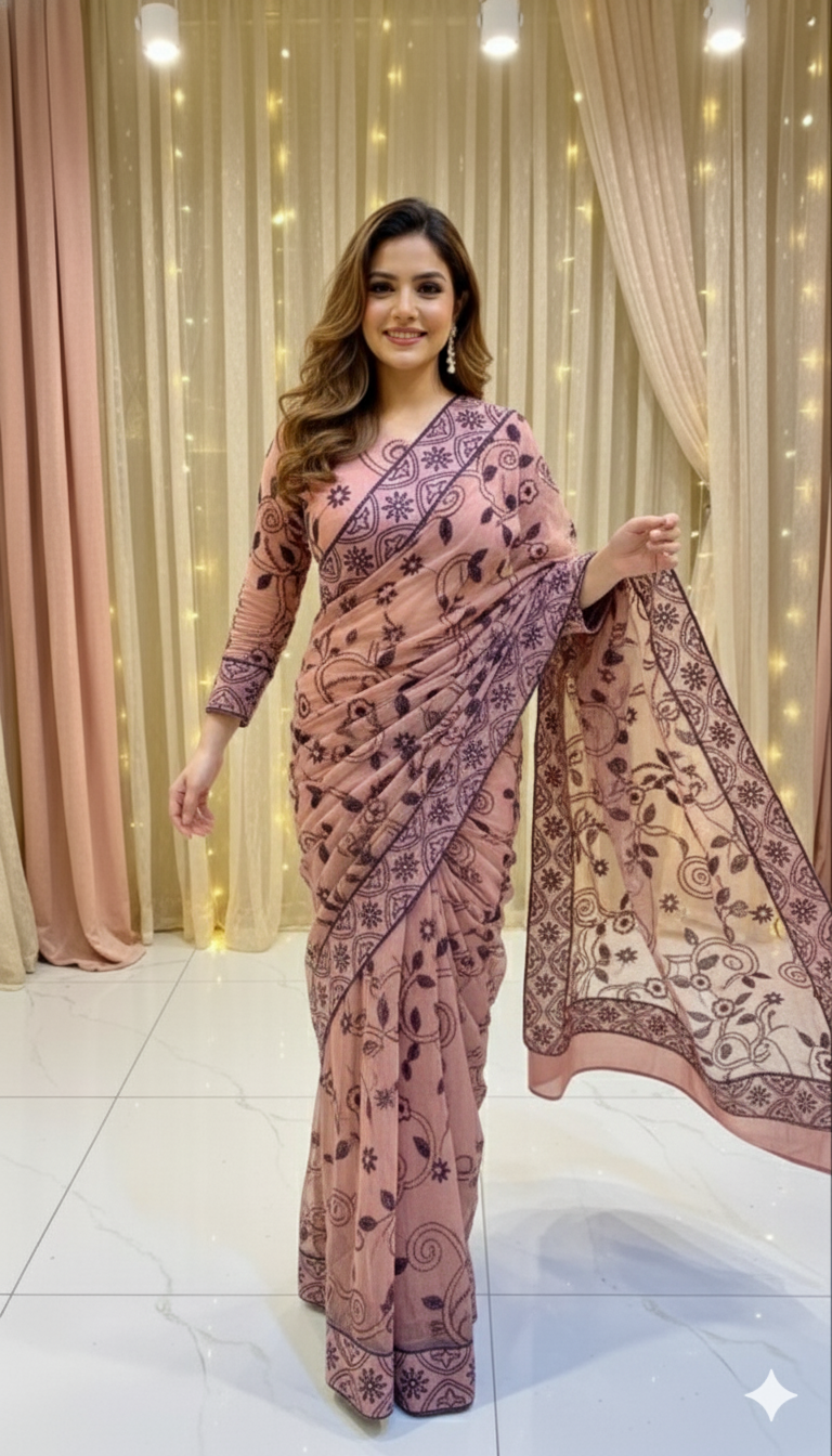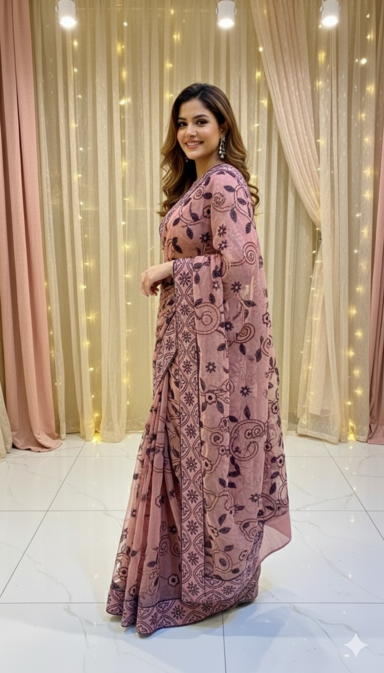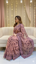 Pink Net Sequance Saree