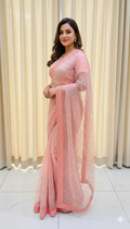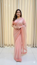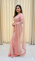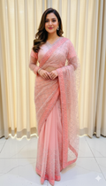 PINK RHINE STONE PEARL HANDMADE SAREE